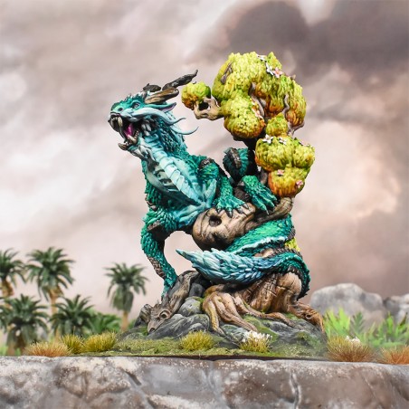 Le dragon Xirkaali Gokluu est une créature serpentiforme dépourvue d’ailes, incarnant la puissance et l’audace de l’empire Xirkaali. Sa présence sur le champ de bataille inspire courage et détermination à tous les guerriers qui l’entourent, renforçant la force et la cohésion de l’armée.