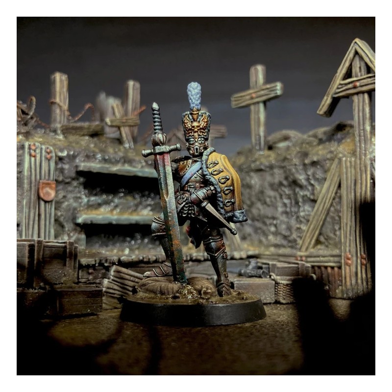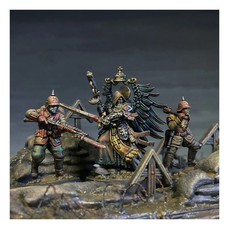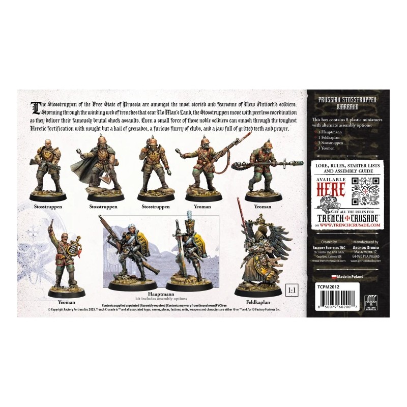 Ce set inclut un Hauptmann pour diriger vos troupes, un Feldkaplan pour soutenir vos unités, trois Stosstruppen et trois Yeomen pour renforcer vos lignes, ainsi qu’un ensemble de socles de 25/32 mm pour un déploiement optimal sur le champ de bataille.