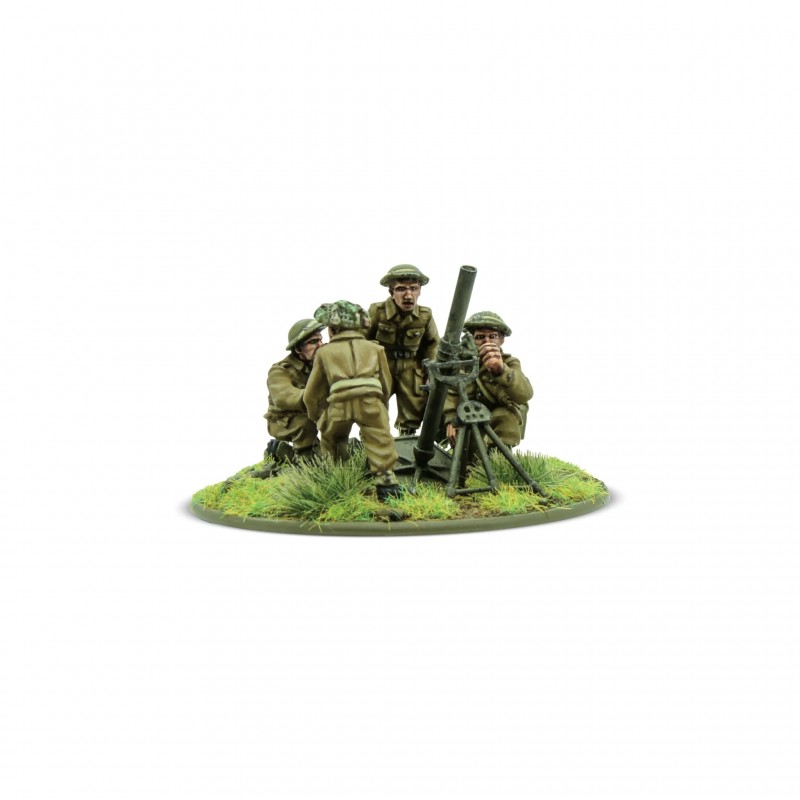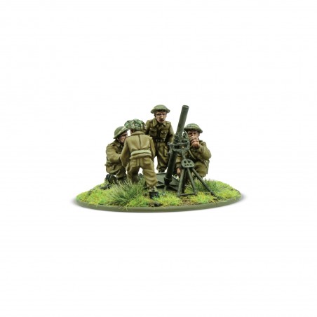 Le kit comprend un mortier lourd en métal et quatre servants britanniques en uniforme de fin de guerre, accompagnés de socles en plastique. Chaque figurine permet de créer des poses dynamiques et de représenter fidèlement les scènes de combat. Ce modèle allie précision historique, jouabilité et esthétisme, constituant un ajout essentiel pour toute armée britannique dans Bolt Action.