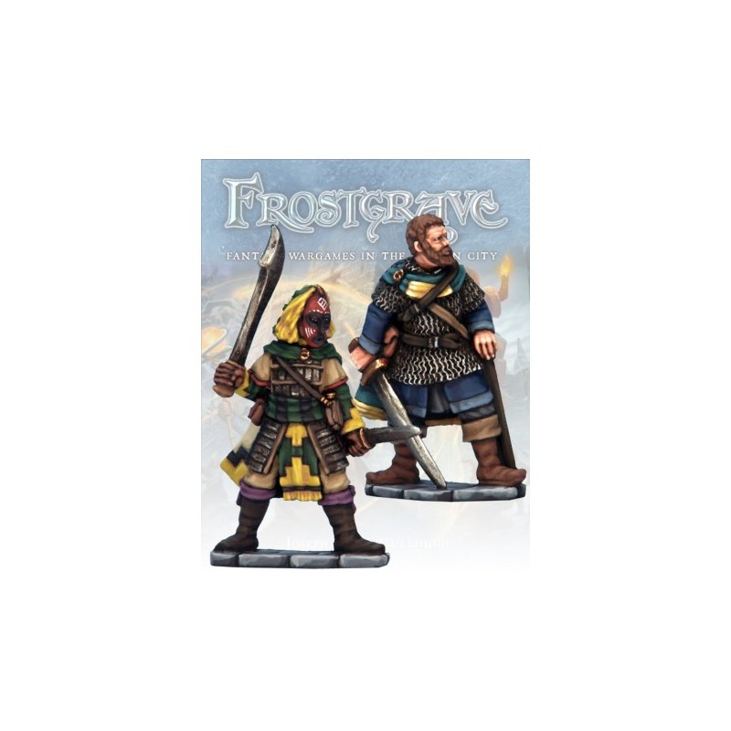 La boîte contient deux figurines en métal, à monter et à peindre. Chaque figurine est finement détaillée, avec des uniformes, des armes et des accessoires représentés avec précision. Ces détails permettent de personnaliser chaque pièce et de créer des scènes de jeu immersives et réalistes, parfaitement adaptées à l’univers de Frostgrave.