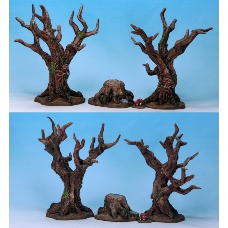 Les éléments sont livrés non peints, ce qui permet aux joueurs de les peindre et de les styliser pour correspondre parfaitement à l’atmosphère de leur partie. Ce set constitue un ajout pratique et esthétique pour enrichir vos forêts et vos terrains de jeu.