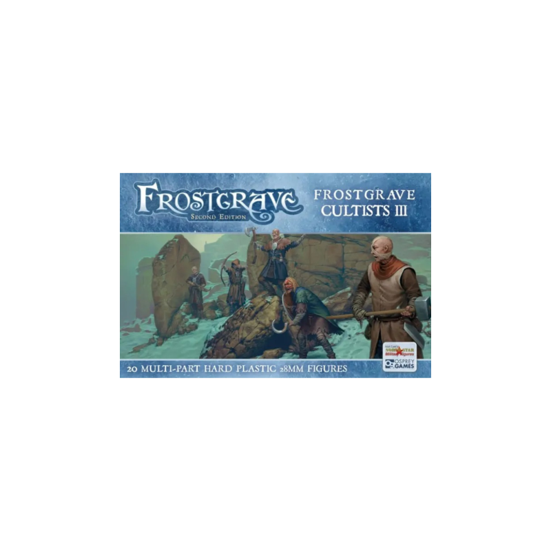 La boîte Frostgrave Cultists III contient suffisamment de pièces pour assembler 20 figurines différentes. Chaque cadre propose plusieurs têtes, bras, armes et accessoires, ce qui garantit que chaque bande reste unique. Les Cultistes apparaissent dans Thaw of the Lich Lord en tant qu'adversaires dans les scénarios et lors de rencontres aléatoires, mais ils peuvent également servir de soldats pour les bandes de sorciers maléfiques, notamment celles qui ont embrassé le Lichdom. Ils offrent ainsi une grande flexibilité pour enrichir vos parties et vos histoires dans l'univers de Frostgrave.