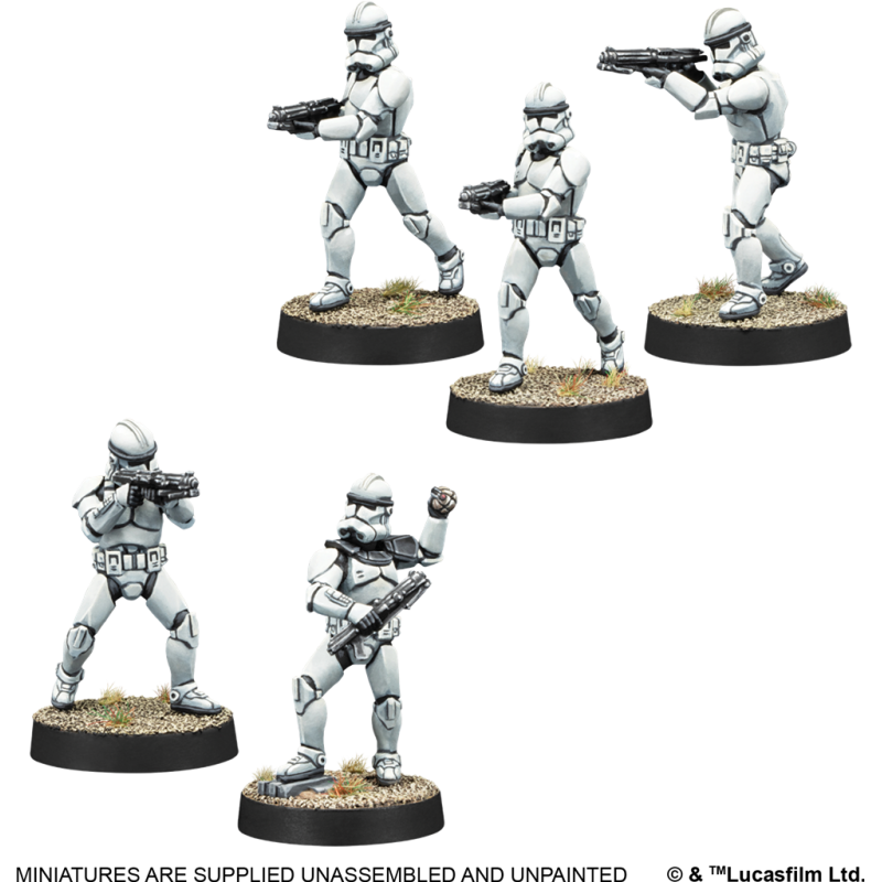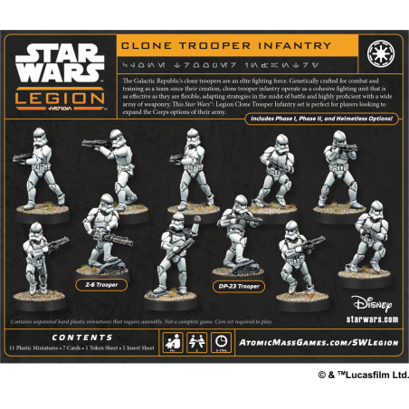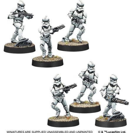 L’extension contient 11 figurines en plastique, 1 carte Unité, 6 cartes Amélioration et 1 feuillet de référence. Les figurines sont à assembler et non peintes, afin de laisser aux joueurs toute liberté pour personnaliser leurs couleurs et marquages. Une boîte de base Star Wars™: Legion est nécessaire pour utiliser cette extension en jeu. Parfaite pour les fans souhaitant enrichir leur collection, renforcer leurs troupes ou améliorer la profondeur stratégique de leurs armées, cette extension constitue un ajout idéal pour tout joueur de la République.