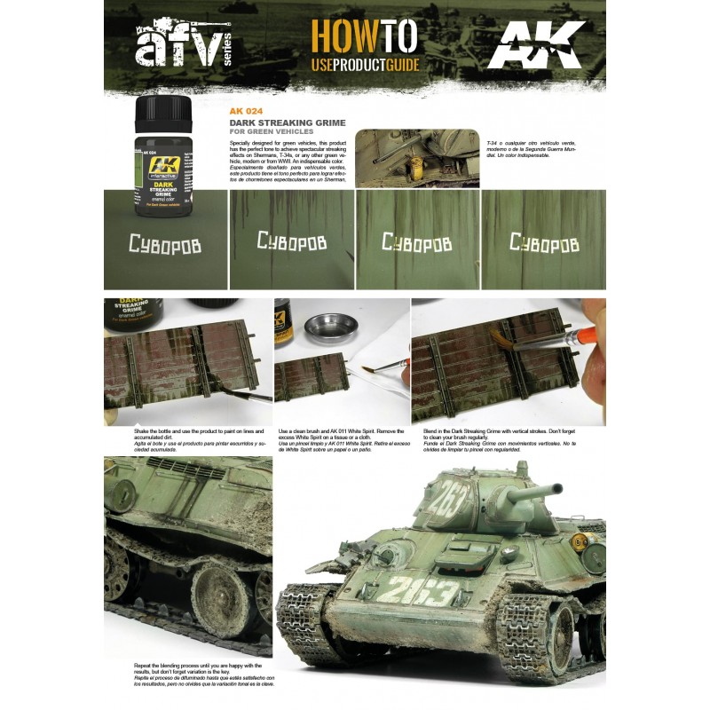 Avant utilisation, secouez bien le flacon pour homogénéiser la peinture. Appliquez ensuite les coulures avec un pinceau fin en traçant des lignes verticales irrégulières depuis les parties supérieures sur les côtés du modèle, puis laissez sécher environ 10 minutes. Cette étape permet de reproduire fidèlement les traces de saleté et les effets naturels d’usure.