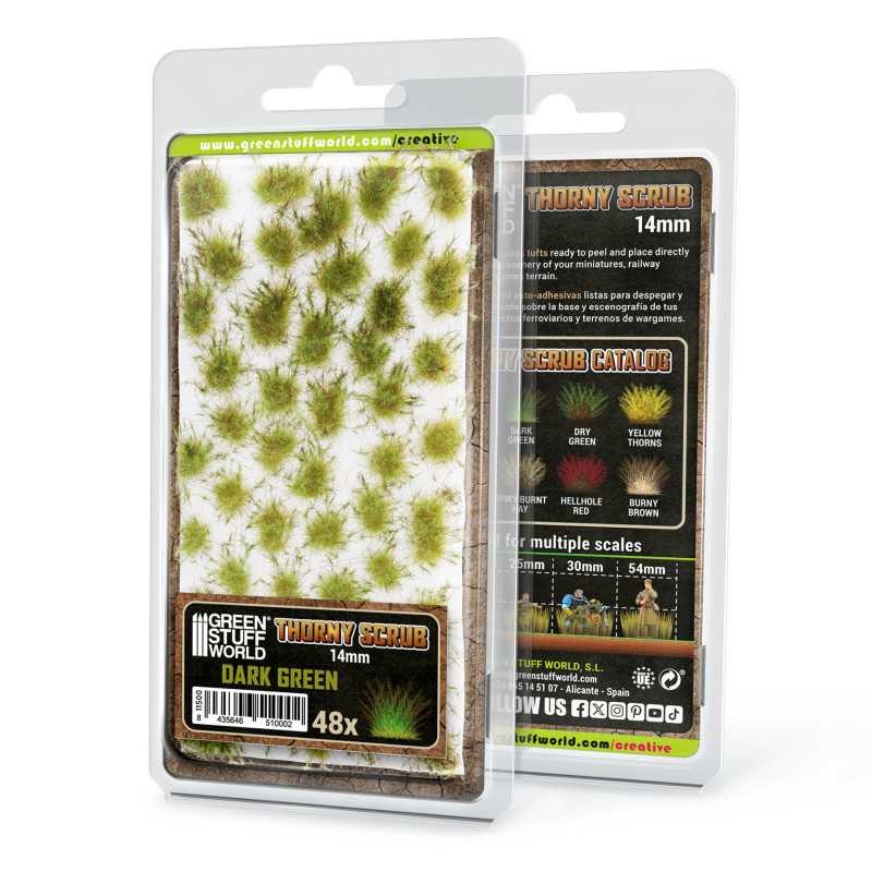La pose est simple et rapide : retirez chaque touffe de son emballage à l’aide d’une pince, puis fixez-la sur la surface souhaitée grâce à sa base autocollante. Pour les supports irréguliers ou exigeant une tenue durable, une petite quantité de colle ou de colle blanche suffit à garantir une adhérence parfaite. Chaque set contient 48 buissons de 14 mm de haut, un format idéal pour réaliser des décors variés et détaillés, du plateau de jeu au diorama d’exposition.