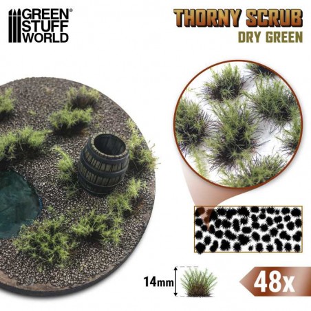 J'en profite !Apportez une touche de réalisme et d’originalité à vos dioramas et socles de figurines grâce à ces buissons épineux uniques. Spécialement pensés pour les univers de science-fiction et de fantasy, ces touffes reproduisent fidèlement l’apparence et la texture de la végétation naturelle. Elles ajoutent instantanément du relief et de la profondeur à vos décors, transformant une base simple en un environnement riche et immersif.
