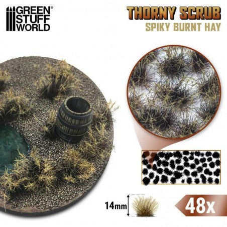 J'en profite !Apportez du réalisme et de la profondeur à vos bases et dioramas sur le thème de la science-fiction et de la fantasy avec ces buissons épineux uniques. Chaque touffe reproduit fidèlement la texture et la forme de la végétation naturelle, ajoutant du volume et du relief à vos créations miniatures. Ces buissons transforment instantanément vos socles, maquettes et décors en environnements immersifs et détaillés.