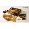Conçu pour les amateurs de modélisme et de dioramas, ce Starter Box contient tout le nécessaire pour donner vie à vos créations. Vous y trouvez quatre feuilles complètes de touffes d’herbe, une paire de pinces, une bouteille de colle PVA et un livret de conseils pour la mise en base. Les touffes incluses — Spikey Beige, Dry Tuft 6 mm, Beige 4 mm et Tiny Beige — offrent des textures variées et des tons naturels qui reproduisent fidèlement la végétation des régions sèches.