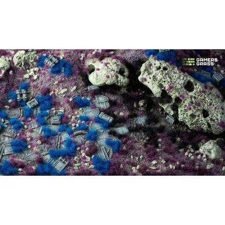 Ce Starter Box contient tout le nécessaire pour donner vie à vos paysages d’un autre monde : quatre feuilles complètes de touffes d’herbe, une paire de pinces, une bouteille de colle PVA et un livret de conseils pour la mise en base. Les touffes incluses — Alien Blue 6 mm, Alien Void 6 mm, Alien Purple 6 mm et Tiny Purple — offrent une palette de couleurs uniques, idéales pour représenter des terrains extraterrestres, des dômes hostiles ou des planètes lointaines aux reflets irréels. Leur texture fine et leur teinte vive ajoutent profondeur et contraste à vos dioramas futuristes.