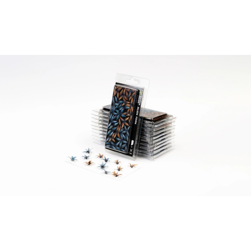 Cette planche contient 38 groupes de feuilles de fougère extraterrestre de tailles et couleurs variées, prêts à être utilisés sur vos maquettes, figurines et dioramas. Placées seules ou combinées avec d’autres plantes de la gamme GamersGrass, elles permettent de composer des environnements riches et menaçants. La fougère alien ajoute ainsi profondeur, couleur et danger, transformant chaque scène en un décor vivant et mystérieux.