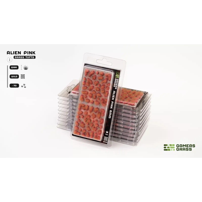 Cette planche contient environ 70 touffes de formes et tailles variées, prêtes à l’emploi pour vos figurines, maquettes et dioramas. Les touffes se détachent facilement une par une et sont immédiatement prêtes à l’usage. Les touffes roses de GamersGrass apportent couleur, texture et une atmosphère magique et immersive à vos créations terrestres, féeriques ou sous-marines.