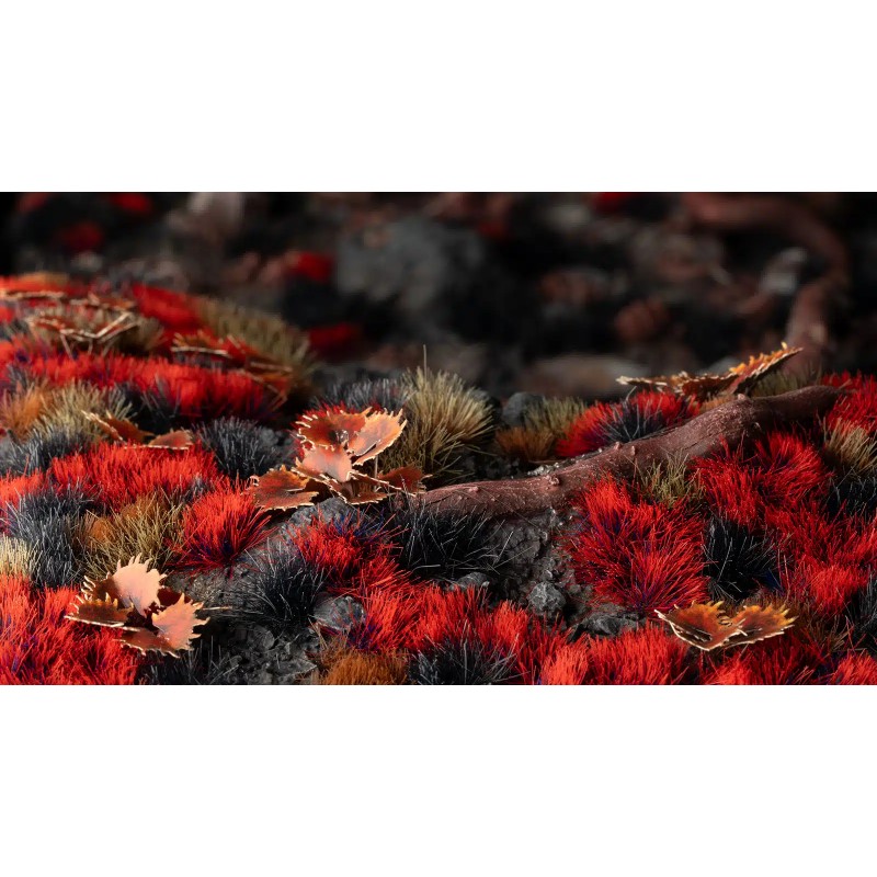 J'en profite !Ces touffes présentent une teinte écarlate vive avec un soupçon de bleu, créant un effet rappelant le velours rouge. Elles apportent majesté et intensité à vos scènes, idéales pour représenter des univers mystérieux où des créatures étranges évoluent sous l’éclat envoûtant d’une lune de sang.