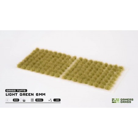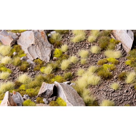 J'en profite !Ces touffes présentent un mélange de verts clairs, représentant de jeunes pousses et des herbes aux teintes claires. Parfaites pour recréer de nombreux types de prairies, pâturages et champs. Lorsqu’elles sont combinées avec d’autres couleurs et tailles, elles augmentent la variation des tons, améliorant grandement vos socles d’armée et dioramas.