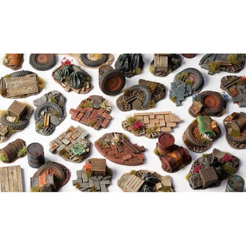 Perdus dans les débris de la guerre à travers le passé, le présent et le futur, les Urban Warfare capturent un monde où les factions se sont affrontées et effondrées. Barils, jerricans, briques brisées et bidons rouillés jonchent les rues en ruine, peignant un tableau de dévastation. Que les ruines évoquent des batailles passées ou les conséquences d'un futur post-apocalyptique, ce terrain raconte une histoire de destruction… et d'espoir. Entre les fissures, des signes de vie commencent à apparaître, rappel silencieux que même dans les endroits les plus sombres, le renouveau viendra…
