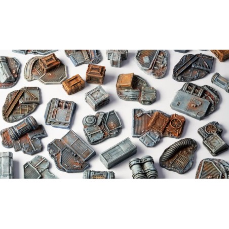 Cette boîte contient un assortiment de Spaceship Corridor Basing Bits en thermoplastique. Tous les Basing Bits sont vendus non peints.