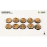 Cette boîte contient 10 socles ronds Battle Ready en thermoplastique de 25 mm de diamètre, sur le thème Deserts of Maahl.