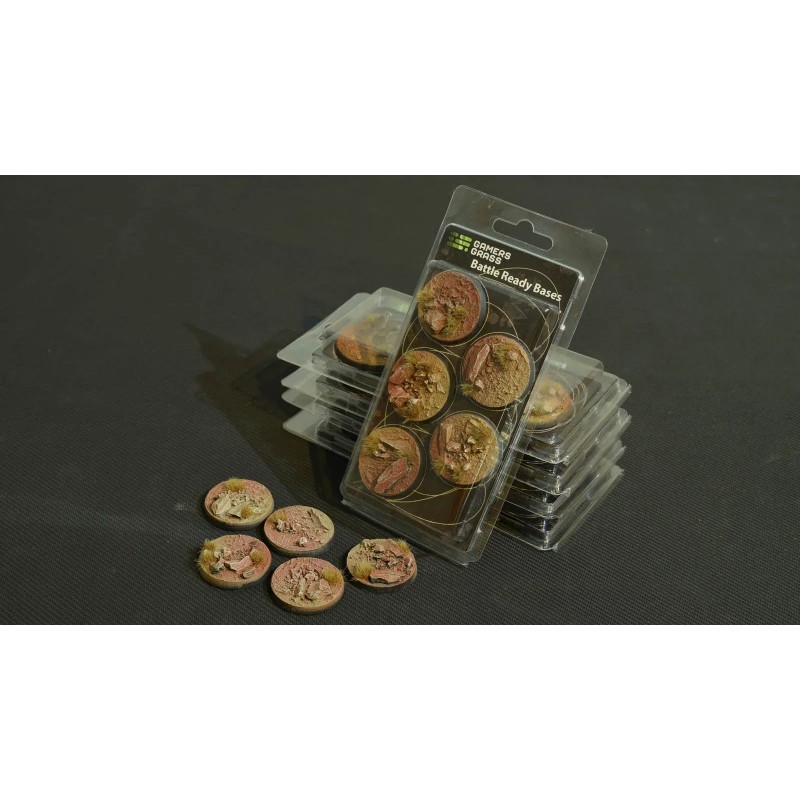 Ce pack contient 5 socles ronds Battle Ready de 40 mm de diamètre sur un thème de badlands. Chaque socle est conçu pour s'intégrer facilement dans des dioramas ou des parties de jeu, apportant une texture et une couleur réalistes qui enrichissent l'aspect visuel de vos figurines. Les détails du terrain, des fissures aux reliefs rocheux, renforcent l'impression d'un environnement désertique et hostile.