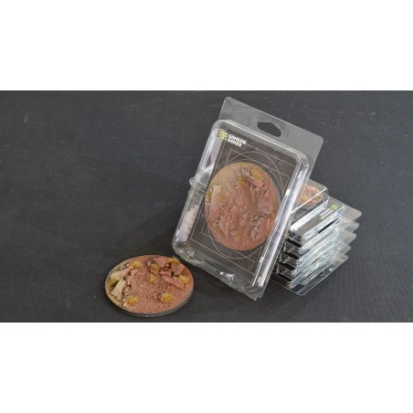 Ce pack contient 1 socle rond Battle Ready de 100 mm de diamètre sur un thème de badlands. Il s’intègre facilement dans vos dioramas ou parties de jeu, apportant des textures et des couleurs authentiques qui mettent en avant vos figurines. Les détails du terrain, tels que les fissures, les reliefs rocheux et les touffes de végétation sèche, renforcent l’impression d’un environnement désertique et impitoyable, parfait pour des mises en scène réalistes ou fantastiques.
