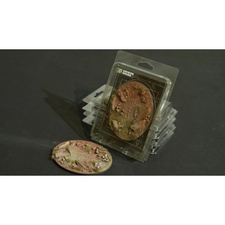 Ce pack contient 1 socle ovale Battle Ready de 120 mm de large sur un thème de badlands. Il s’intègre facilement dans vos dioramas ou parties de jeu, apportant des textures et des couleurs authentiques qui mettent en avant vos figurines. Les détails du terrain, des fissures aux reliefs rocheux en passant par les touffes de végétation sèche, renforcent l’impression d’un environnement désertique et impitoyable.
