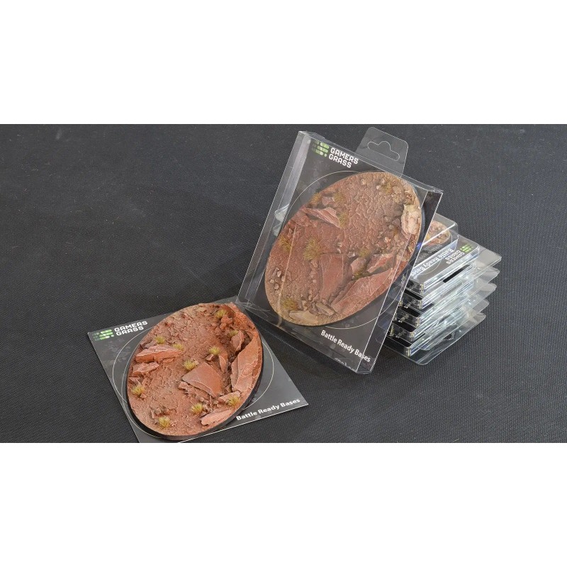 Ce pack contient 1 socle ovale Battle Ready de 170 mm de large sur un thème de badlands. Il s’intègre facilement dans vos dioramas ou parties de jeu, apportant des textures et des couleurs authentiques qui mettent en avant vos figurines. Les détails du terrain, tels que les fissures, les reliefs rocheux et les touffes de végétation sèche, renforcent l’impression d’un environnement désertique et impitoyable, idéal pour des mises en scène réalistes ou fantastiques.