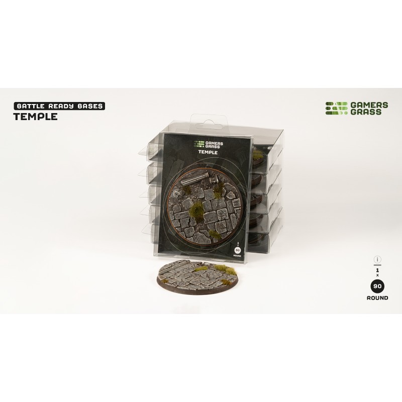 Ce pack contient 1 socle rond Battle Ready de 90 mm de diamètre sur un thème temple. Le socle s’intègre facilement dans vos parties de jeu ou vos expositions, offrant des textures et des couleurs réalistes qui mettent en valeur vos figurines. Les pavés fissurés, les reliefs sculptés et les touches de végétation créent un rendu immersif qui donne vie à vos batailles et aventures dans un monde ancien.