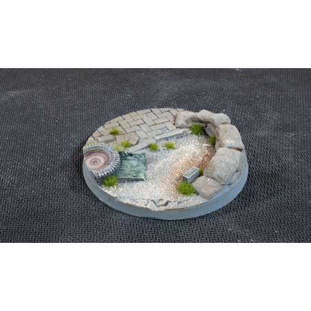 J'en profite !Ces socles représentent des rues poussiéreuses avec de l’asphalte cassé, des pavés de trottoir déplacés, des roues abandonnées, des sacs de sable, des tranchées, des bidons de carburant et divers débris partiellement recouverts de petites herbes et de mousses. Ils recréent fidèlement des environnements urbains en ruine, parfaits pour toutes vos scènes de guerre, qu’elles se situent dans les grandes guerres historiques ou dans des conflits futuristes de science-fiction.