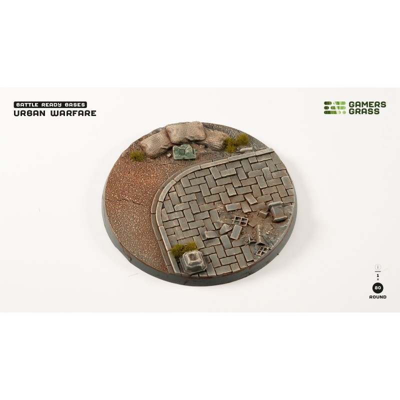 Ce pack contient 1 socle rond Battle Ready de 80 mm de diamètre sur un thème Urban Warfare. Le socle s’intègre facilement dans vos parties de jeu ou vos dioramas, offrant des textures et des détails réalistes qui mettent en valeur vos figurines. Les rues abîmées, les débris et les éléments de décor urbain créent une atmosphère immersive et dynamique, idéale pour vos scénarios de combat et vos mises en scène tactiques.