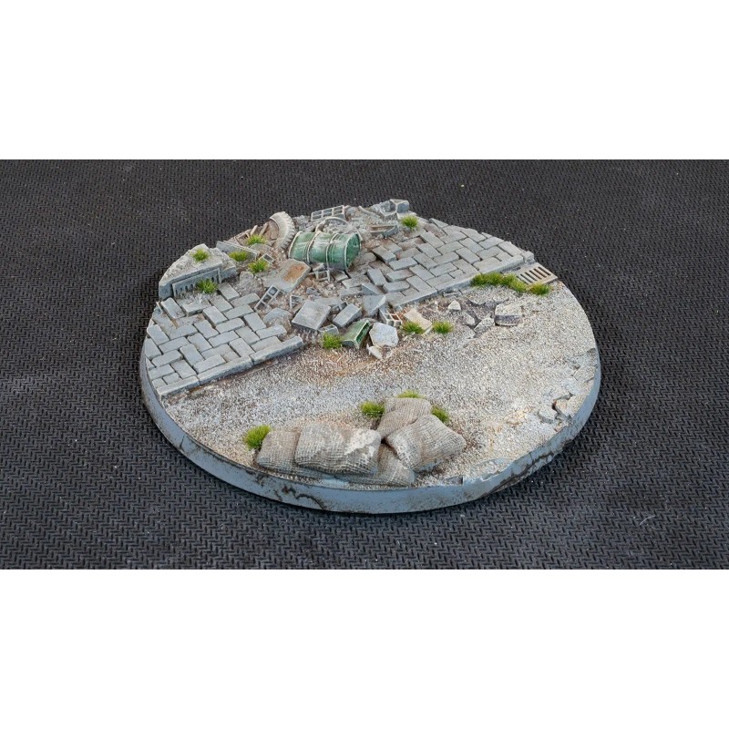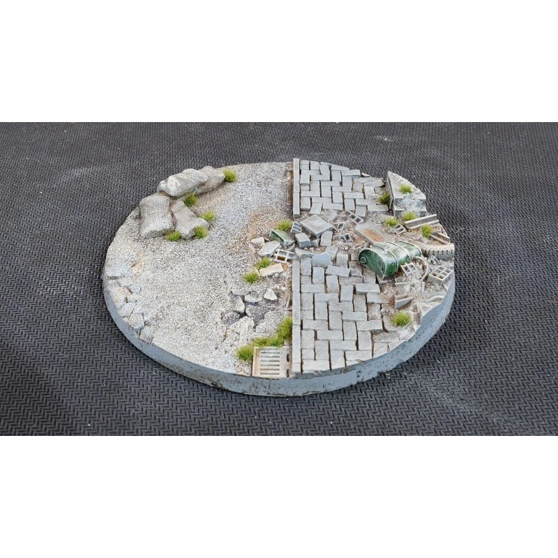 Ce pack contient 1 socle rond Battle Ready de 100 mm de diamètre sur un thème guerre urbaine. Le socle s’intègre facilement dans vos parties de jeu ou vos dioramas, offrant des textures et des détails réalistes qui mettent en valeur vos figurines. Les rues abîmées, les débris et les éléments de décor urbain créent une atmosphère immersive et dynamique, idéale pour vos scénarios de combat et vos mises en scène tactiques.