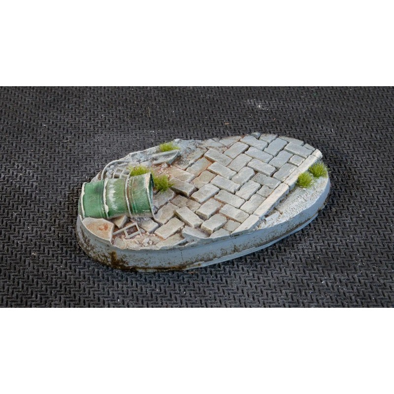 Ce pack contient 4 socles ovales Battle Ready de 60 mm de large sur un thème guerre urbaine. Chaque socle s’intègre facilement dans vos parties de jeu ou vos dioramas, offrant des textures et des détails réalistes qui mettent en valeur vos figurines. Les rues abîmées, les débris et les éléments de décor urbain créent une atmosphère immersive et dynamique, idéale pour vos scénarios de combat et vos mises en scène tactiques.