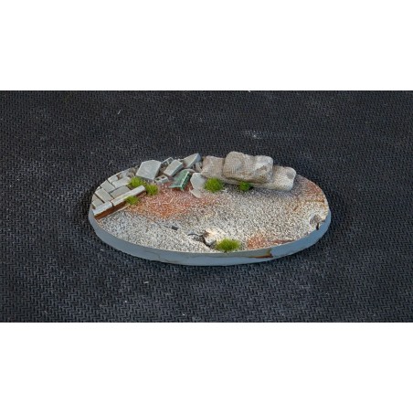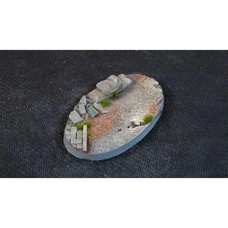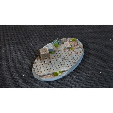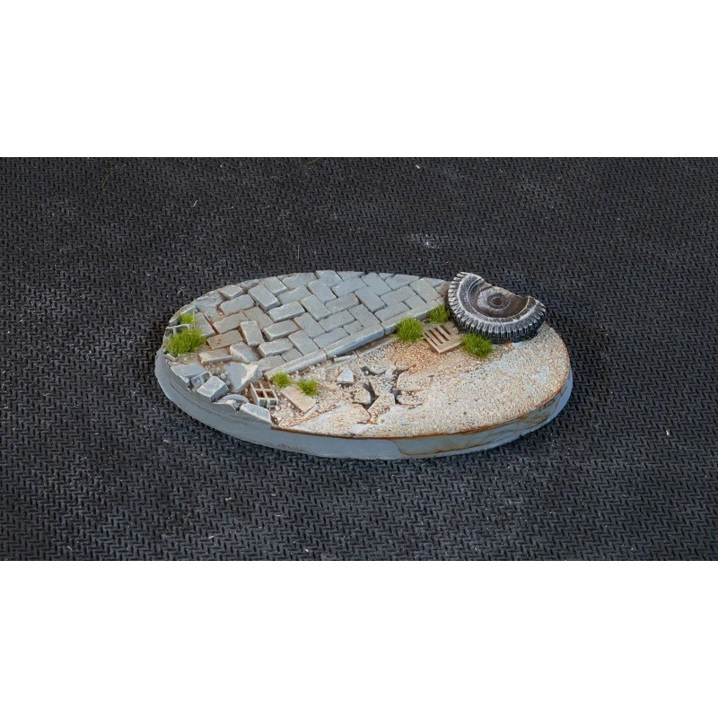 Ce pack contient 3 socles ovales Battle Ready de 75 mm de large sur un thème guerre urbaine. Chaque socle s’intègre facilement dans vos parties de jeu ou vos dioramas, offrant des textures et des détails réalistes qui mettent en valeur vos figurines. Les rues abîmées, les débris et les éléments de décor urbain créent une atmosphère immersive et dynamique, idéale pour vos scénarios de combat et vos mises en scène tactiques.