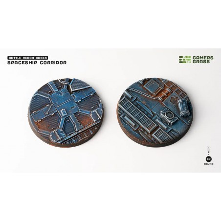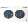 Ce blister contient 2 socles ronds Battle Ready de 60 mm de diamètre sur un thème couloir de vaisseau spatial. Chaque socle est fabriqué en thermoplastique durable et s’intègre facilement dans vos dioramas ou parties de jeu. Les rainures au bas des socles sont compatibles avec des aimants de 6 mm de diamètre et 1 mm d’épaisseur pour une fixation stable, bien que les aimants ne soient pas inclus.