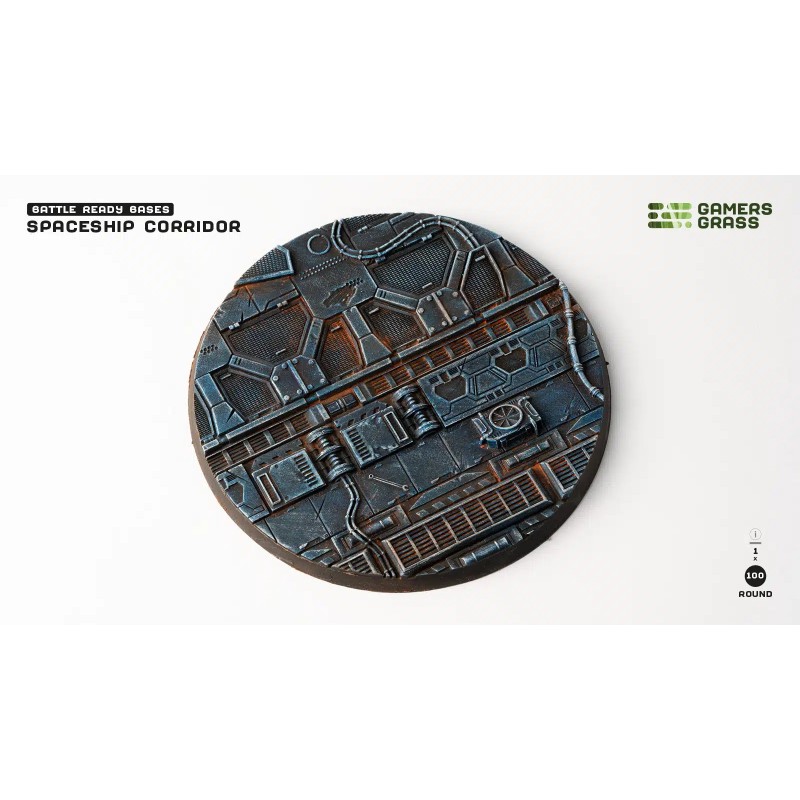 Ce blister contient 1 socle rond Battle Ready de 100 mm de diamètre, sur le thème couloir de vaisseau spatial. Fabriqué en thermoplastique résistant, ce socle s’adapte parfaitement à vos figurines de grande taille ou à vos décors de jeu. Les rainures situées sous le socle sont compatibles avec des aimants de 6 mm de diamètre et 1 mm d’épaisseur, garantissant une fixation solide et pratique. Les aimants ne sont pas inclus.