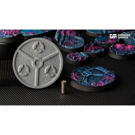 Ce blister contient 3 socles ronds Battle Ready de 50 mm de diamètre sur un thème « Infestation Alien ». Fabriqués en thermoplastique de haute qualité, ces socles offrent une base solide et durable, idéale pour vos figurines de taille moyenne ou grande. Les fentes situées sous les socles sont compatibles avec des aimants d’un diamètre maximal de 6 mm et d’une épaisseur de 1 mm, permettant une fixation sûre sur vos plateaux de jeu ou systèmes de transport. Les aimants ne sont pas inclus.