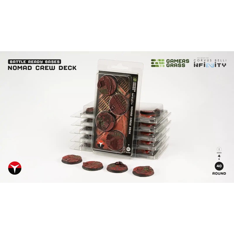 Ce pack contient 4 socles ronds Battle Ready peints et finis à la main. Chaque socle met en valeur les détails et les textures du thème Nomad Crew Deck, offrant un rendu professionnel et immersif dès l’ouverture du blister. Ces bases renforcent l’atmosphère et la stratégie de vos parties « Infinity », idéales pour représenter les voyages et échanges de ces sociétés nomades à travers la galaxie.