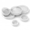 Chaque moule correspond aux tailles standards de bases utilisées en wargaming, allant de 25 mm à 60 mm. Pour un résultat optimal et éviter toute déformation liée à la chaleur dégagée par la résine, il est recommandé de verser la résine en fines couches successives. Il est également important de ne pas manipuler les moules avant la polymérisation complète, afin d’éviter la formation de bulles internes causées par la libération d’air piégé dans la résine.