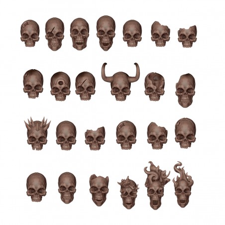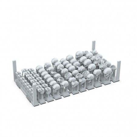 Le set contient 72 pièces, offrant une variété de formes et de tailles qui permettent de composer des scènes riches et immersives. Disposés sur les bases ou intégrés dans le décor, ces crânes ajoutent instantanément du contraste et de la profondeur visuelle.