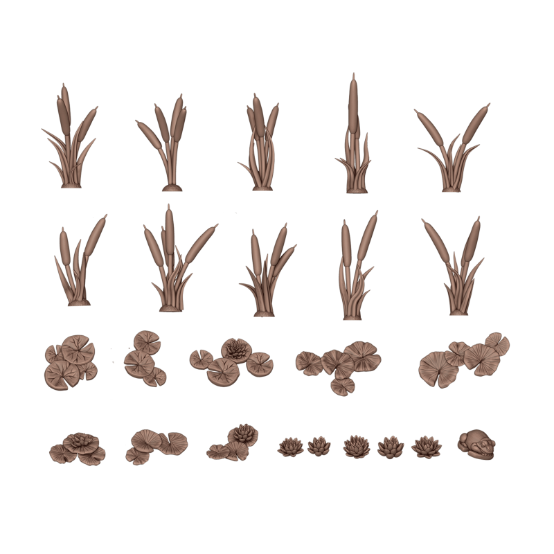 J'en profite !Ces roseaux et nénuphars en résine sont parfaits pour être combinés et utilisés avec des armées miniatures à thème oriental, comme Cathay, ou simplement pour apporter une esthétique asiatique à vos dioramas et socles de figurines.