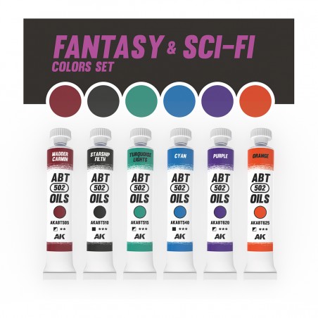 J'en profite !Ce set contient six couleurs à l’huile offrant une grande profondeur, un contraste marqué et une intensité de couleur exceptionnelle. Il est spécialement sélectionné pour créer des contrastes et modifier la peinture de véhicules et vaisseaux Sci-Fi, ainsi que pour travailler les effets sur des créatures fantastiques.