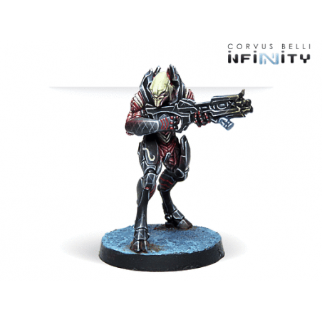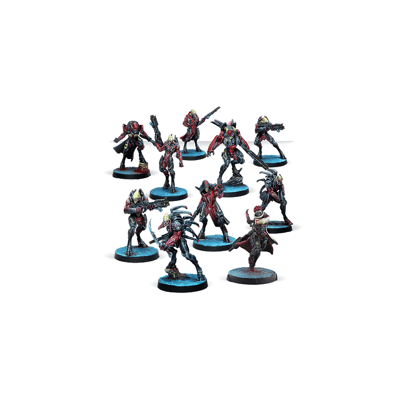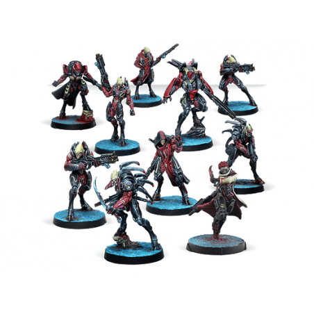 Cette boîte contient dix figurines pour l'armée Shasvastii : trois Nox Troopers équipés de fusils mitrailleurs, un Mentor avec fusil d'abordage, un Caliban avec fusil d'abordage, un Caliban avec Spitfire, un Shrouded avec fusil mitrailleur, un Gwailo avec HMG, et un Malignos avec fusil d'abordage accompagné du personnage spécial Sheskiin avec Red Fury. Cette collection constitue le point de départ idéal pour débuter votre armée combinée et intégrer les Shasvastii à vos parties, offrant une variété d'unités polyvalentes pour enrichir vos stratégies et vos scénarios de jeu.