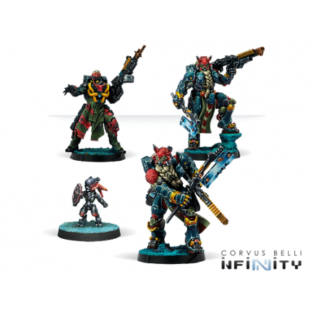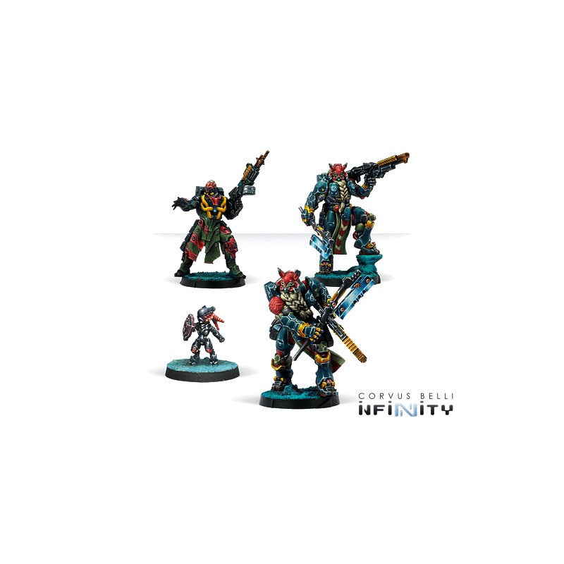Cette boîte contient quatre figurines conçues pour renforcer votre armée Morat : un Suryat équipé d’un lance-roquette lourd, un autre Suryat armé d’une HMG, et un Kurgat muni d’un fusil d’abordage accompagné d’un TinBot. Ces unités apportent une combinaison optimale de puissance de feu, de résilience et de soutien tactique. Elles constituent le choix idéal pour former une équipe d’attaque solide et polyvalente au sein de votre Morat Aggression Forces Action Pack, assurant une capacité de réponse rapide et une domination totale sur le terrain.