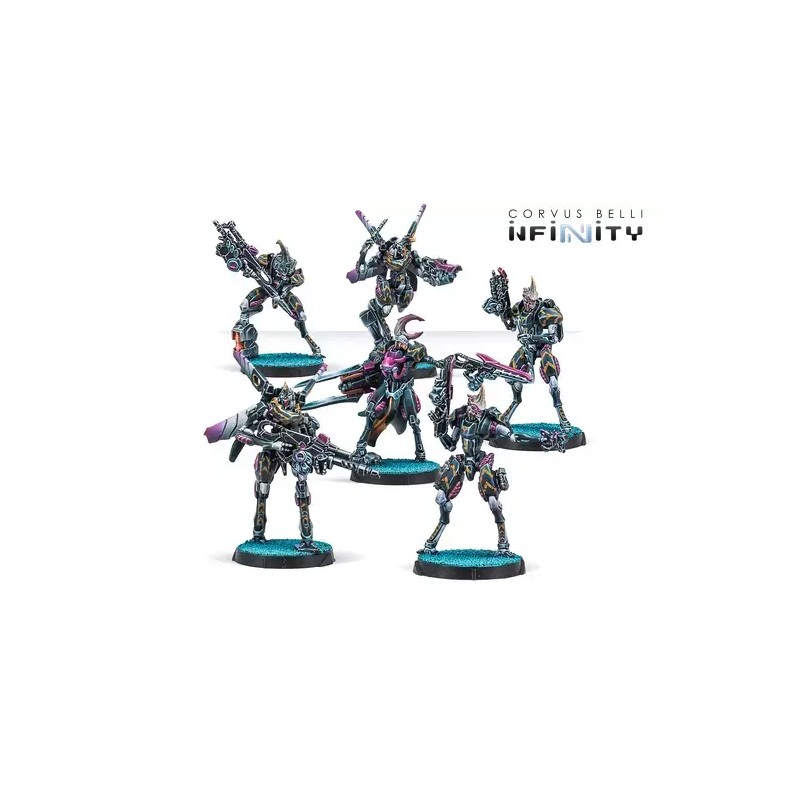 Cette boîte contient six figurines : un opérateur de base avec fusil combi et fusil léger, un opérateur de base ingénieur, un opérateur du néant avec fusil d’abordage, un opérateur du néant avec Red Fury, un opérateur vectoriel avec Spitfire, et un EXO, officier exécutif, avec carabine à plasma. Ces unités constituent le renfort idéal pour vos forces de l’Armée Combinée, offrant polyvalence, puissance de feu et expertise tactique, parfaites pour prendre le dessus lorsque la bataille se complique.