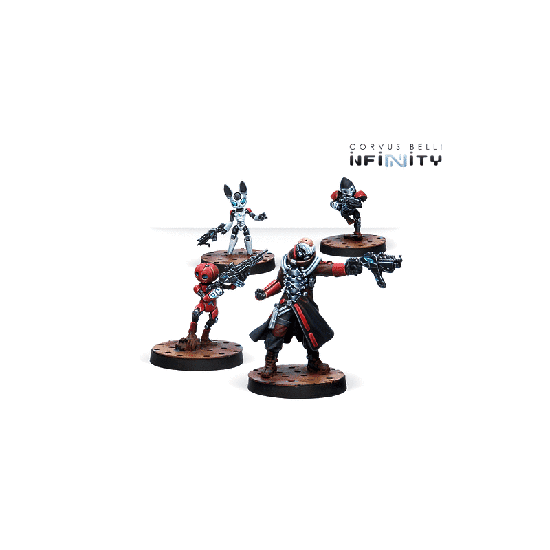 La boîte contient quatre figurines détaillées : un Puppet Master Hacker armé d’une mitraillette et trois PuppetBots prêts à intervenir. Ces unités permettent de former une équipe dynamique où chaque PuppetBot peut se synchroniser pour maximiser l’efficacité du groupe, offrant à votre armée une puissance de feu supplémentaire et la capacité de contrôler des zones stratégiques. Leur déploiement tactique ouvre de nouvelles options de jeu, depuis l’attaque coordonnée jusqu’au soutien de flancs ou à la protection d’objectifs.