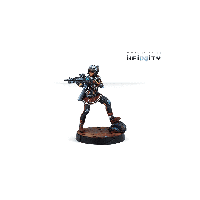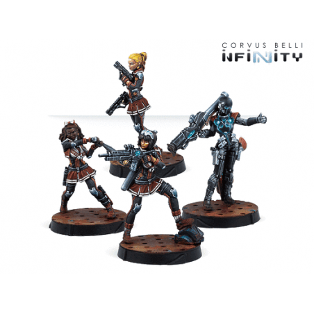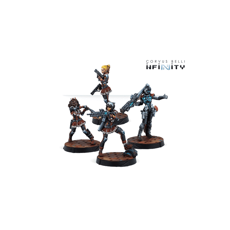 Cette boîte comprend quatre figurines finement détaillées : une Cheerkiller armée d’une mitraillette, une autre équipée de pistolets MULTI, une Cheerkiller avec fusil à lunette de choc, ainsi qu’un Grenzer portant un lance-missiles. Ce mélange d’armes et de profils permet de constituer une équipe polyvalente capable d’engager l’ennemi à toutes distances, de couvrir les points stratégiques et de soutenir les opérations les plus complexes. Chaque figurine apporte ses compétences uniques, créant des combinaisons tactiques intéressantes pour divers scénarios.