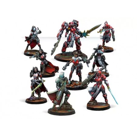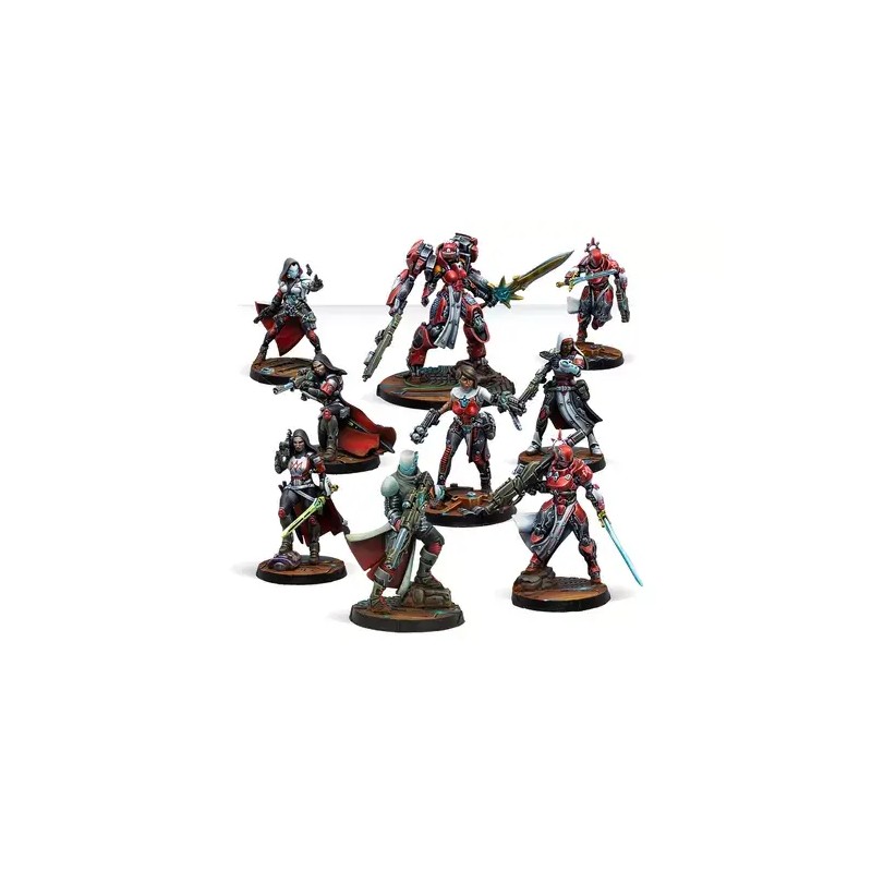 Cette boîte contient neuf figurines détaillées pour l’Armée Sectorielle Nomade de Bakunin, comprenant cinq modèles revisités et quatre créations totalement nouvelles. Les figurines remaniées incluent : une Révérende Moira avec HMG, une Révérende Moira avec Sniper MULTI, un Révérend Médecin Guérisseur avec fusil d’assaut, un Révérend Custodier Hacker avec Combi Rifle et Pitcher, ainsi qu’un Sin-Eater avec MULTI Sniper. Ces figurines bénéficient de sculpts modernisés et offrent une représentation fidèle des compétences de chaque unité.