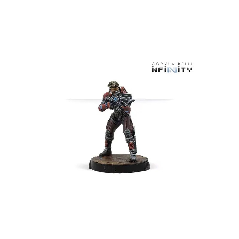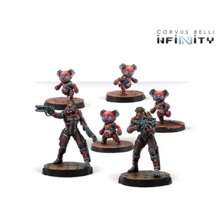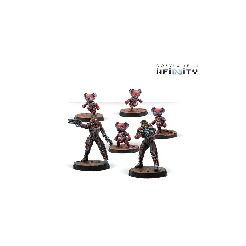 Cette boîte contient six figurines : un Moran équipé d’un fusil Combi, un Moran doté d’un fusil d’abordage et quatre CrazyKoalas. Les Moran Maasai représentent l’une des meilleures options pour assurer un contrôle étendu de la table. Leurs Répéteurs élargissent la zone d'action de vos Hackers, facilitant les offensives cybernétiques tandis que leurs CrazyKoalas dissuadent, ralentissent ou neutralisent l’adversaire. Un choix idéal pour renforcer vos forces Nomades avec une présence tactique efficace et difficile à contourner.