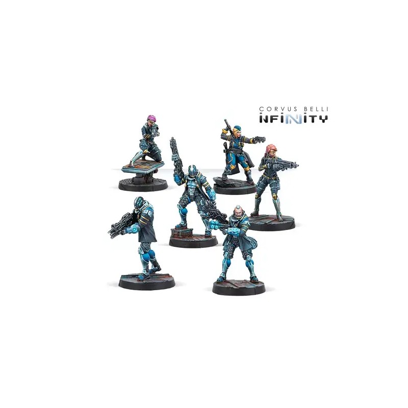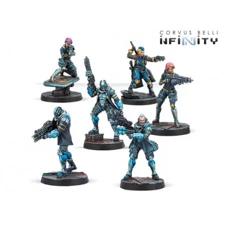 Cette boîte contient six figurines en métal : un Jackboot avec Spitfire, un Jackboot Ingénieur avec mitraillette, un Jackboot Observateur Avancé avec fusil Combi, un Vidocq Médecin avec fusil d’abordage, un Vidocq avec fusil MULTI Marksman, et un Ment avec fusil léger. Elle constitue le renfort idéal pour vos forces O-12 lorsque les situations se compliquent. Le métal utilisé est exempt de plomb conformément à la réglementation européenne REACH. Les figurines sont fournies non peintes et non assemblées, et les composants réels peuvent différer des illustrations.