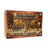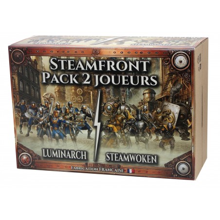 Steamfront est un jeu d’escarmouche Made in France à l’esthétique steam-fantasy qui met en scène l’affrontement tactique de deux clans rivaux composés chacun d’une dizaine de figurines. Conçu pour offrir des parties dynamiques et tendues, Steamfront repose sur des scénarios prédéfinis où chaque décision compte. Les parties sont rapides, durant en moyenne entre 45 minutes et 1 heure, et se distinguent par un rythme fluide sans temps mort grâce à une activation alternée : un joueur active une figurine, puis l’adversaire fait de même.