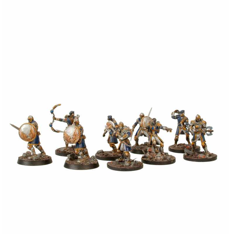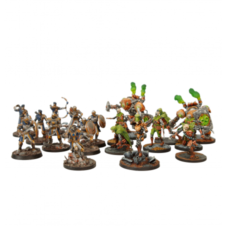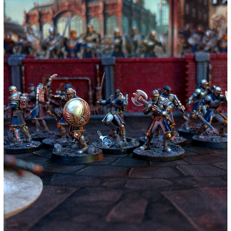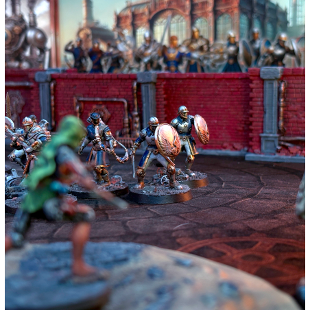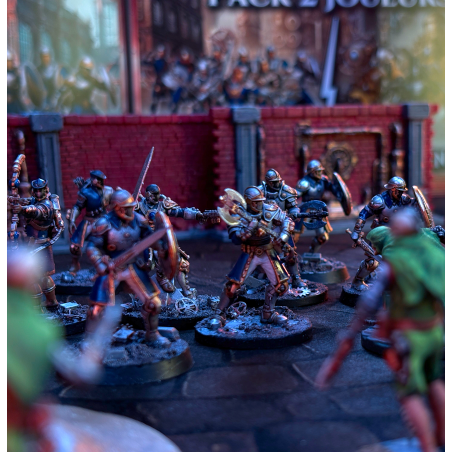 Ce starter complet pour deux joueurs inclut deux factions jouables : les Luminarch et les Steamwoken. La boîte contient 18 figurines imprimées en 3D en résine haute résistance, accompagnées de 18 socles texturés. Vous y trouverez également les règles, les cartes de profils, ainsi que tous les pions, dés et tokens nécessaires pour jouer immédiatement. Les Luminarch comprennent 1 Champion, 2 Protecteurs, 3 Archers et 3 Gardes épée-bouclier. Les Steamwoken alignent 1 Coordonnateur, 2 Marteliers, 3 Chuchoteurs et 3 Assembleurs. Un excellent point d’entrée pour découvrir un jeu d’escarmouche original, tactique et immersif.
