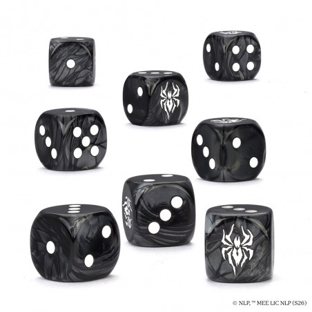 Le détail qui fait toute la différence réside sur les faces portant le chiffre 6, ornées d’une icône d’araignée représentant Arachne. Cet élément graphique renforce l’aspect narratif et visuel de vos lancers de dés, tout en rappelant la menace permanente de la créature dans les tunnels de Cirith Ungol. Ces dés ne sont pas seulement un outil de jeu, mais aussi un véritable accessoire pour valoriser vos armées et vos scénarios thématiques.