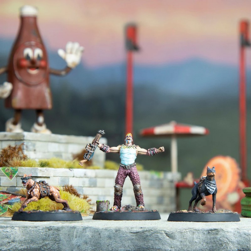 Ce coffret contient trois figurines en résine de haute qualité à l’échelle 32 mm : Mason et deux Hounds, chacune fournie avec un socle scénique de 30 mm. Les miniatures nécessitent un assemblage et sont livrées non peintes. Ce set permet d’ajouter une force emblématique de Nuka World à vos parties de Fallout: Wasteland Warfare, parfaite pour créer des scénarios centrés sur la chasse, la domination territoriale et la sauvagerie du Wasteland.